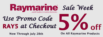 Save 5% all week long on ALL Raymarine Products by jamie on July 22, 2013 add a comment Our Biggest Raymarine Sale is now in full effect. Take 5% off all Raymarine Products now thru Sunday July 28, 2013, just enter RAY5 at checkout!!!
